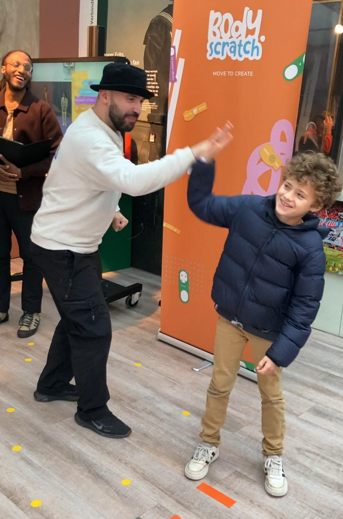 A central notion in our method is integrating the body in the learning process. Very often, screen-based interactions and curriculums omit to take body memory and motoric development into account, resulting in having deficiency in the learning capabilities of children. Being productive and efficient does not work in the long run with unhealthy habits. Children find joy and meaning in being able to move while learning. And let's be real, we know how cool it is to drop some slick moves with friends!